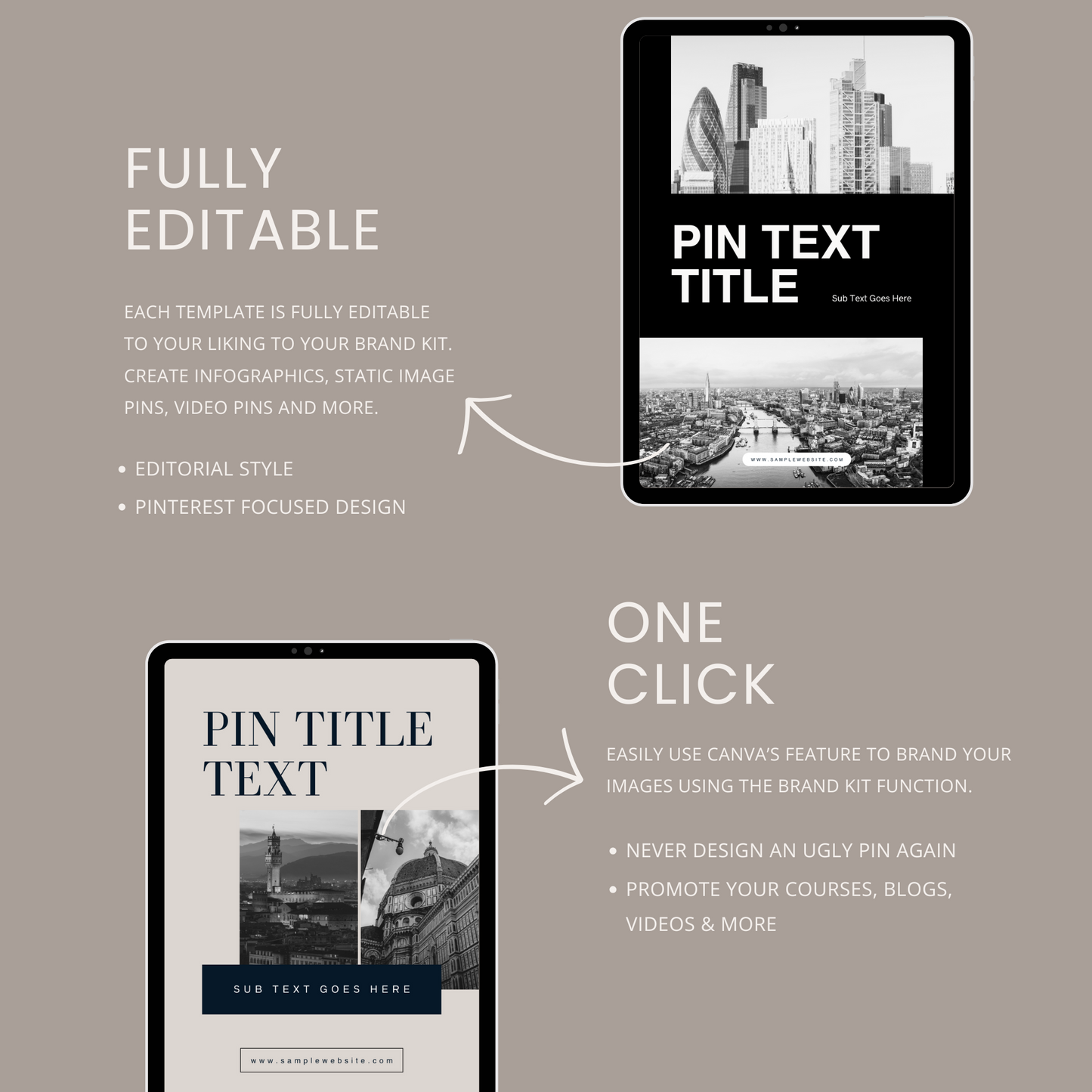 Our templates are created with the pinner in mind. Grab your copy and start designing customized, branded pins with ease.