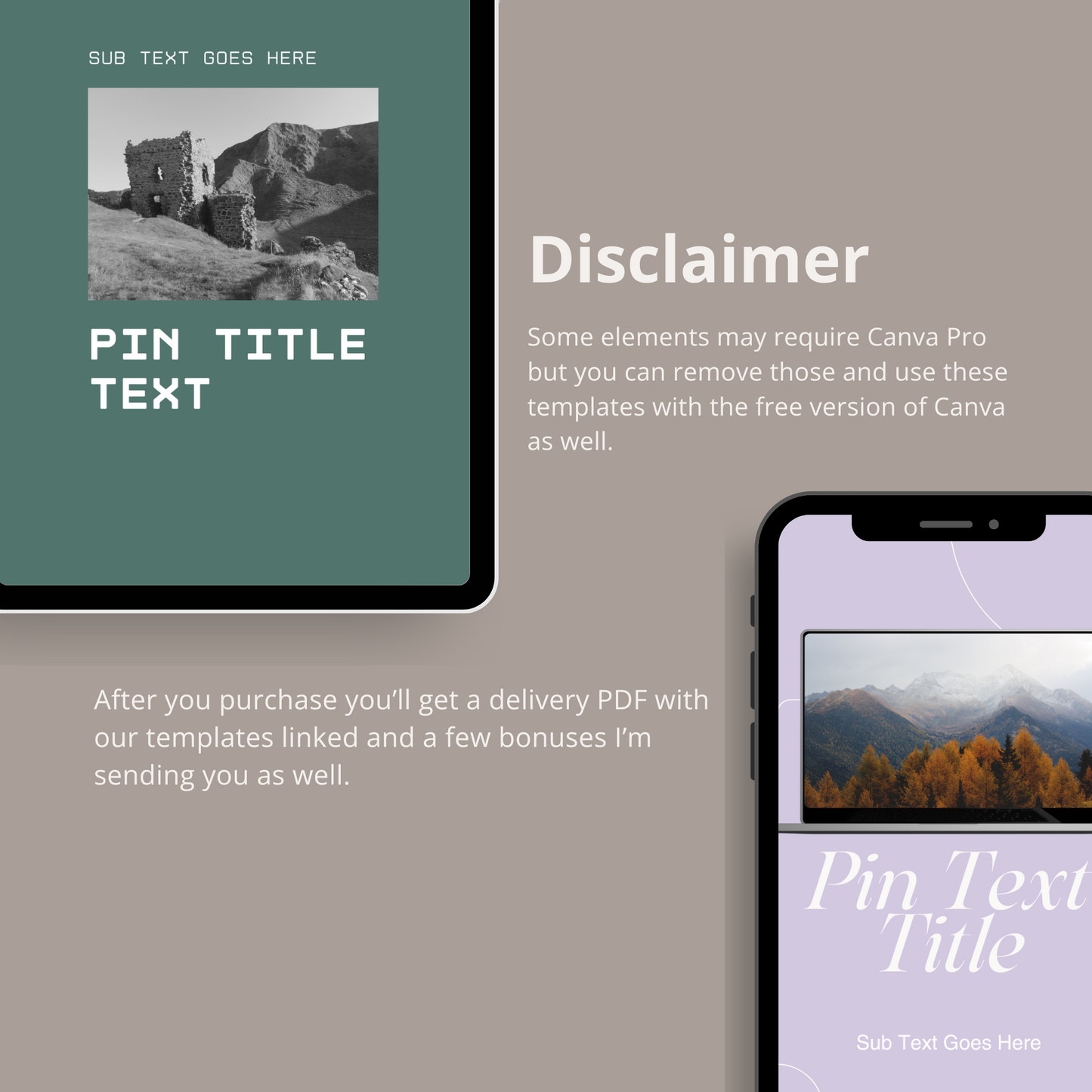 Give your content the spotlight it deserves with our Aesthetic Pinterest Templates! These templates, perfect for blogs and digital products, are expertly crafted to stop the scroll, generate interest, and skyrocket your clicks. Created with Canva, these templates make it easy for you to design stunning pins without any graphic design experience. Each pin is specifically designed by seasoned Pinterest managers, ensuring that it meets the platform's best practices and drives traffic effectively. Our templates are more than just beautiful - they help promote your blog and digital products in the most pinner-friendly way. Enjoy the freedom to customize and align each template with your brand's aesthetic. With our templates, the power to create eye-catching, traffic-driving pins is right at your fingertips. Download now and start your journey to Pinterest success!