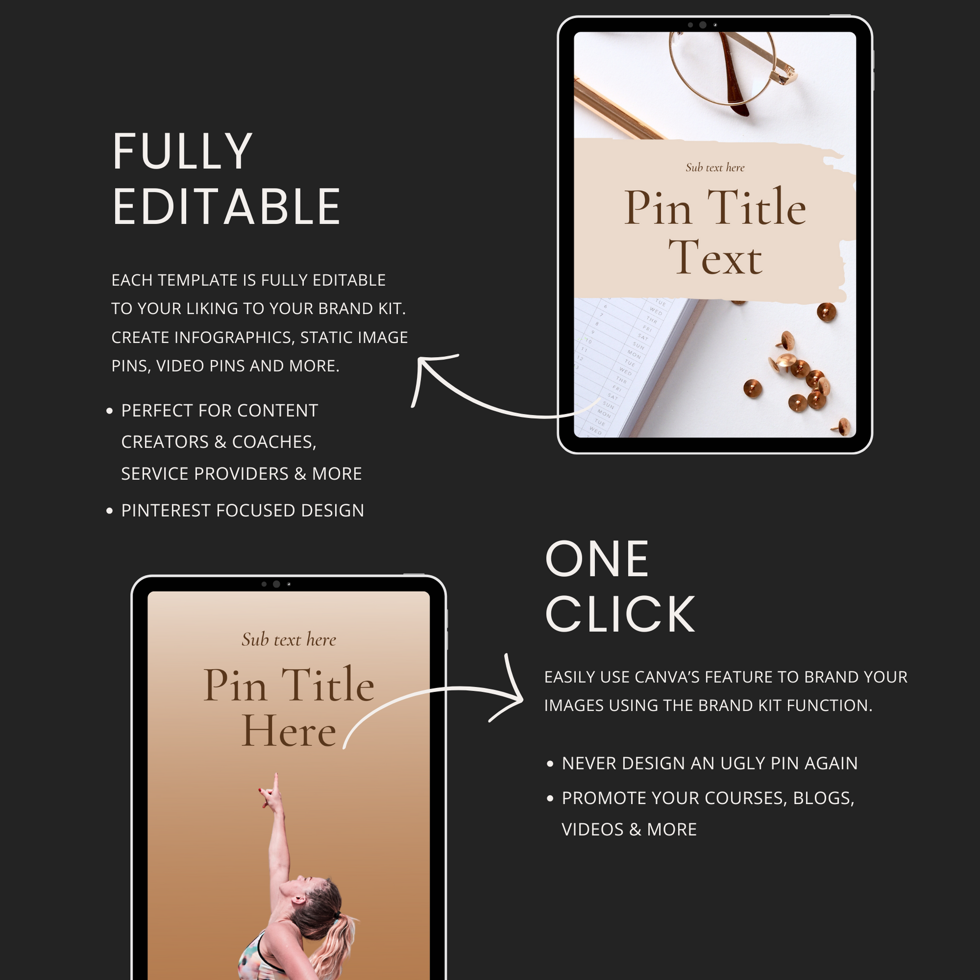 These Pinterest templates for Canva are fully editable and can be branded to your businesses with a click of a button. Stop searching how to create pins on Pinterest and start creating them!
