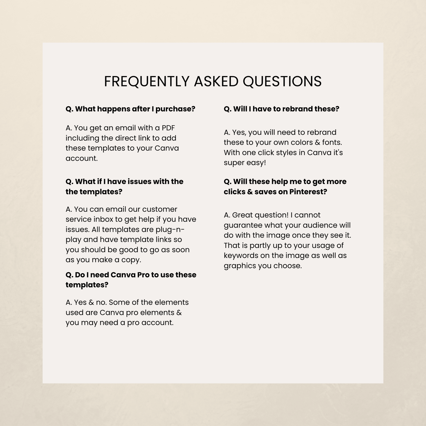 Are you frustrated with creating pins on Pinterest that just fall flat? Maybe you can't seem to find the time to make pins because it takes you hours to get your images just right? Well no one is going to find you on Pinterest if you don't just get started. That's why we design and sell premade Pinterest templates for Canva that you can quickly plug-n-play and get your Pinterest marketing strategy going fast!
