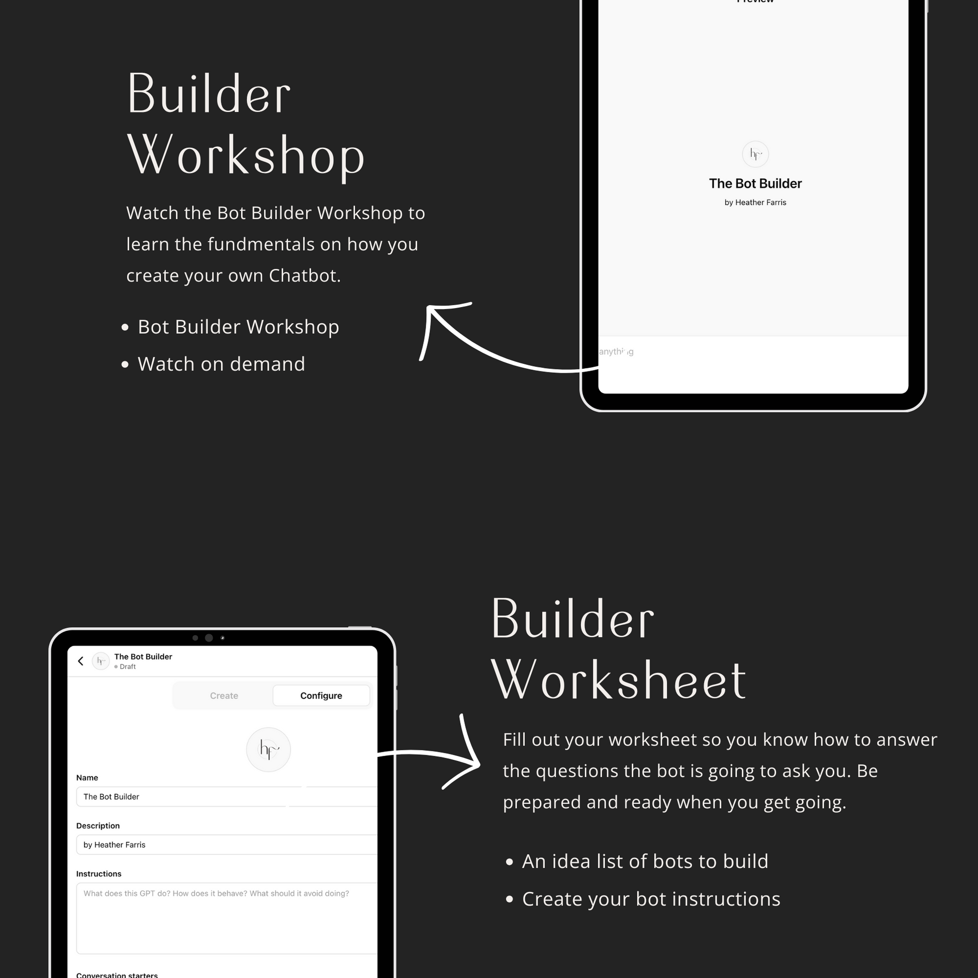 Inside this easy-to-follow workshop, I’ll walk you through how to build a chatbot that actually helps you market your business. Whether you’re brand new to custom bots or you've been experimenting already, this training will help you create a bot that’s aligned with your brand voice, your offers, and the way you work.
