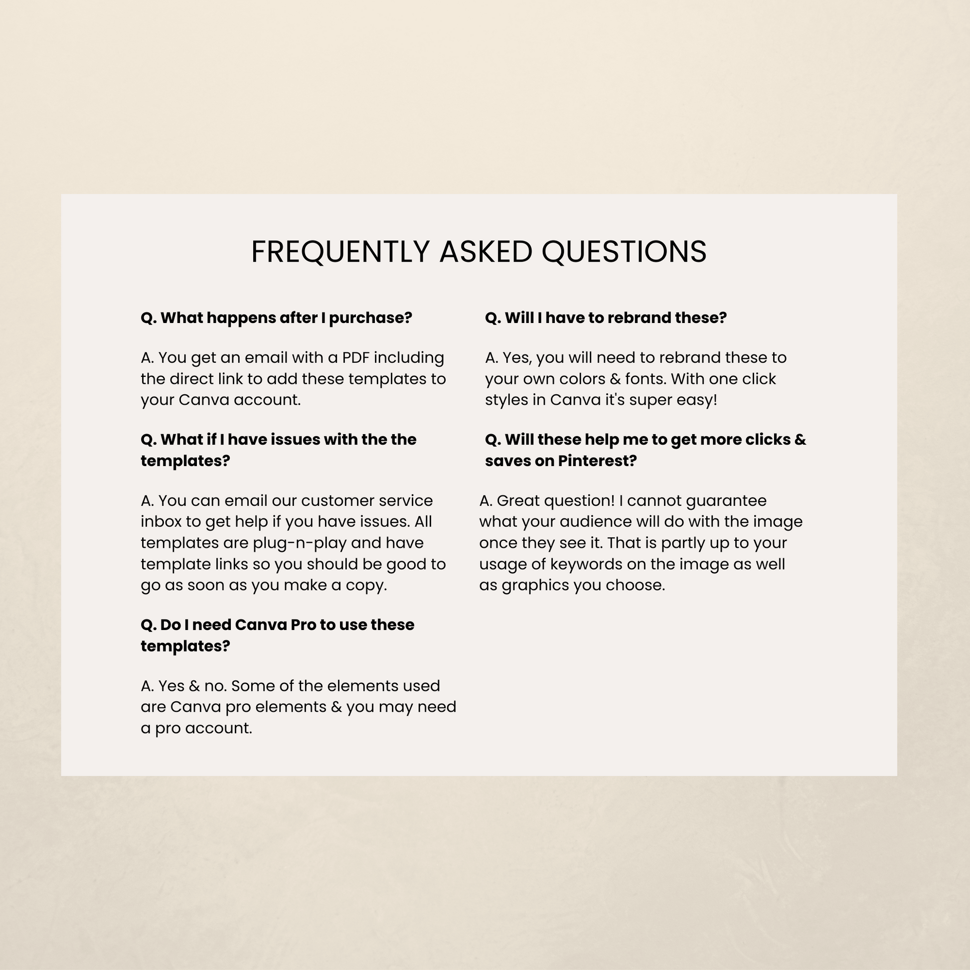 Maybe you can't seem to find the time to make pins because it takes you hours to get your images just right? Well no one is going to find you on Pinterest if you don't just get started. That's why we design and sell pre-made Pinterest templates for Canva that you can quickly plug-n-play and get your Pinterest marketing strategy going fast!