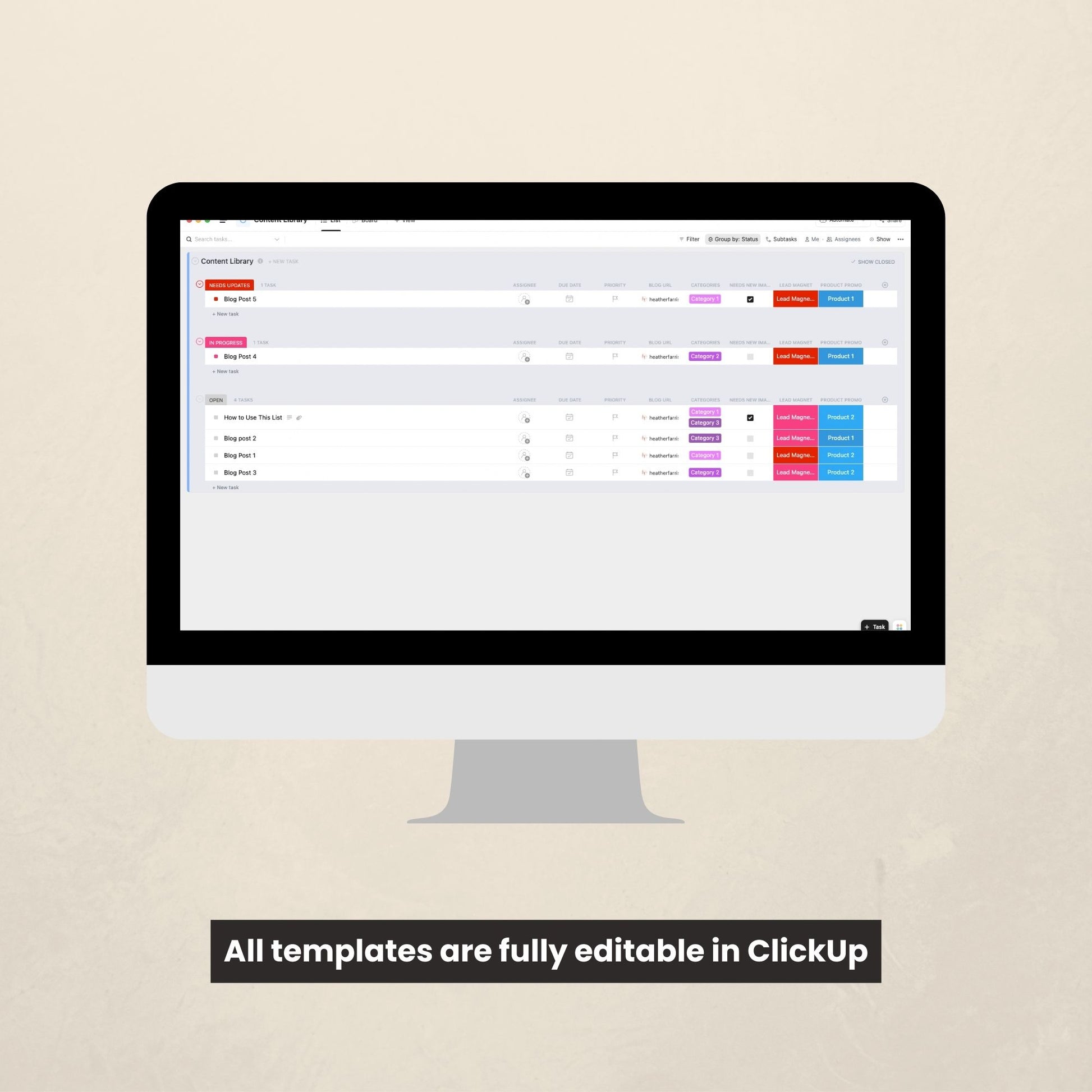 - ClickUp content library template