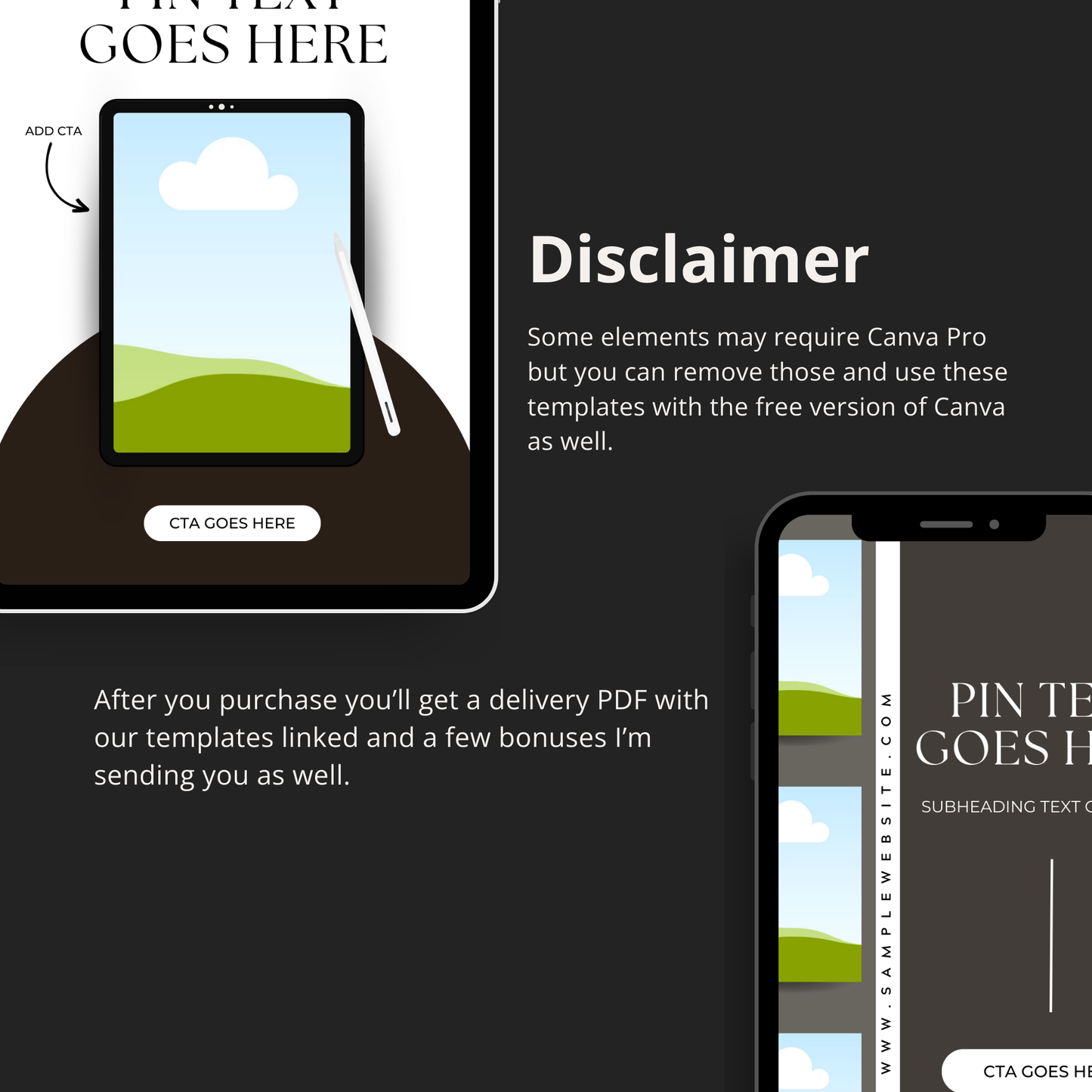 Please note: The Canva templates are designed for you to use to promote your own business, products and links. You may not resell these templates as your own.