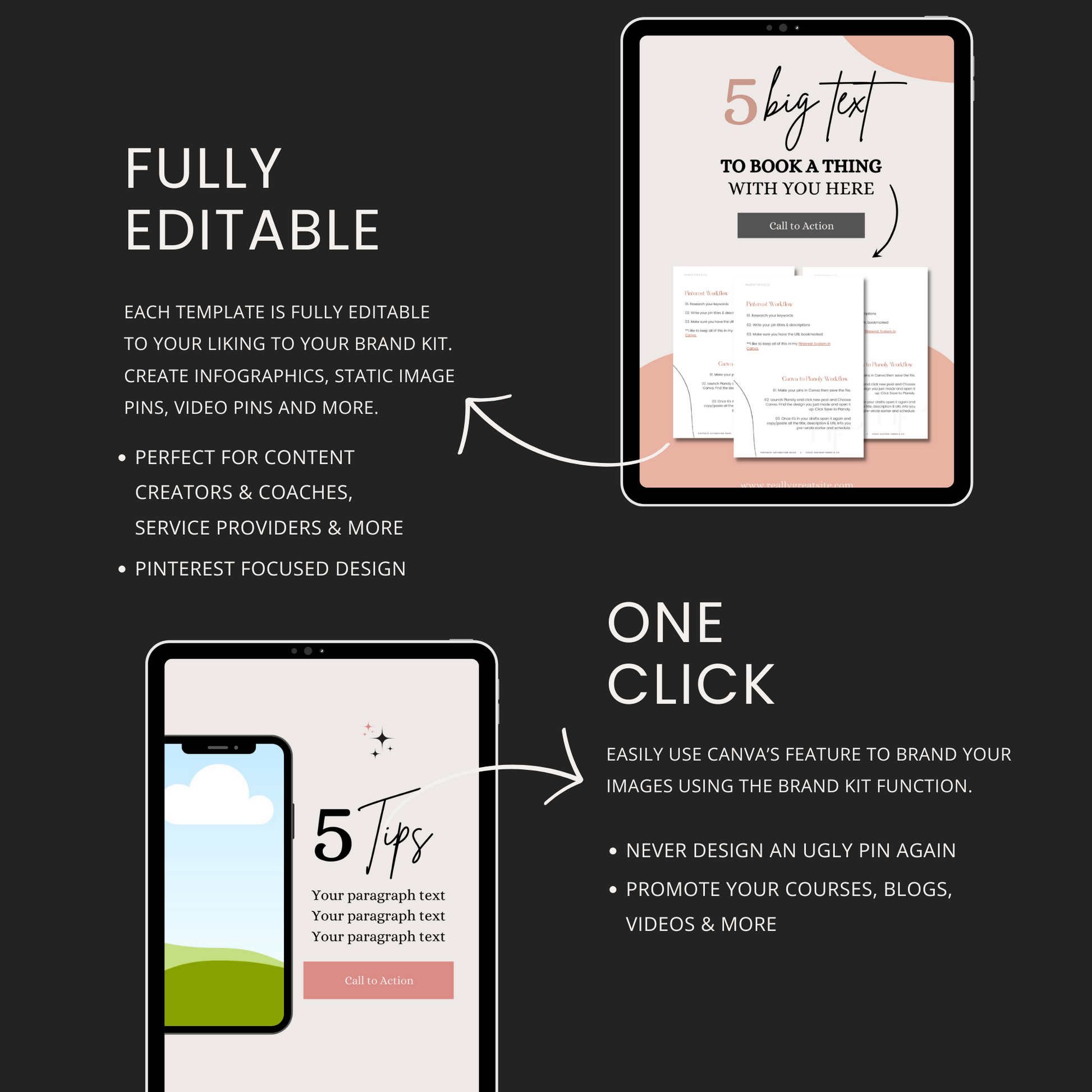 These Pinterest templates for Canva are fully editable and can be branded to your businesses with a click of a button. Stop searching how to create pins on Pinterest and start creating them!