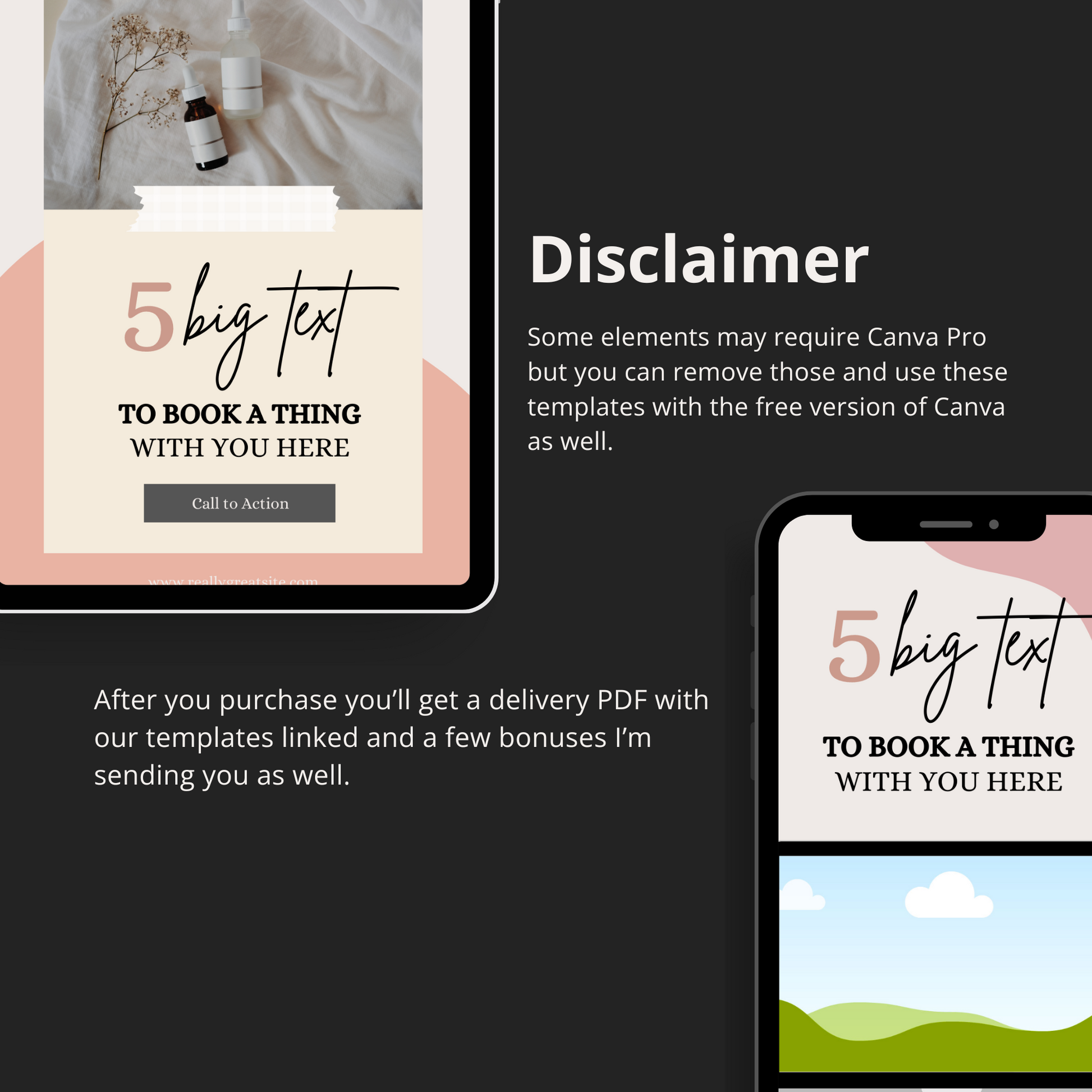 Please note: The Canva templates are designed for you to use to promote your own business, products and links. You may not resell these templates as your own.