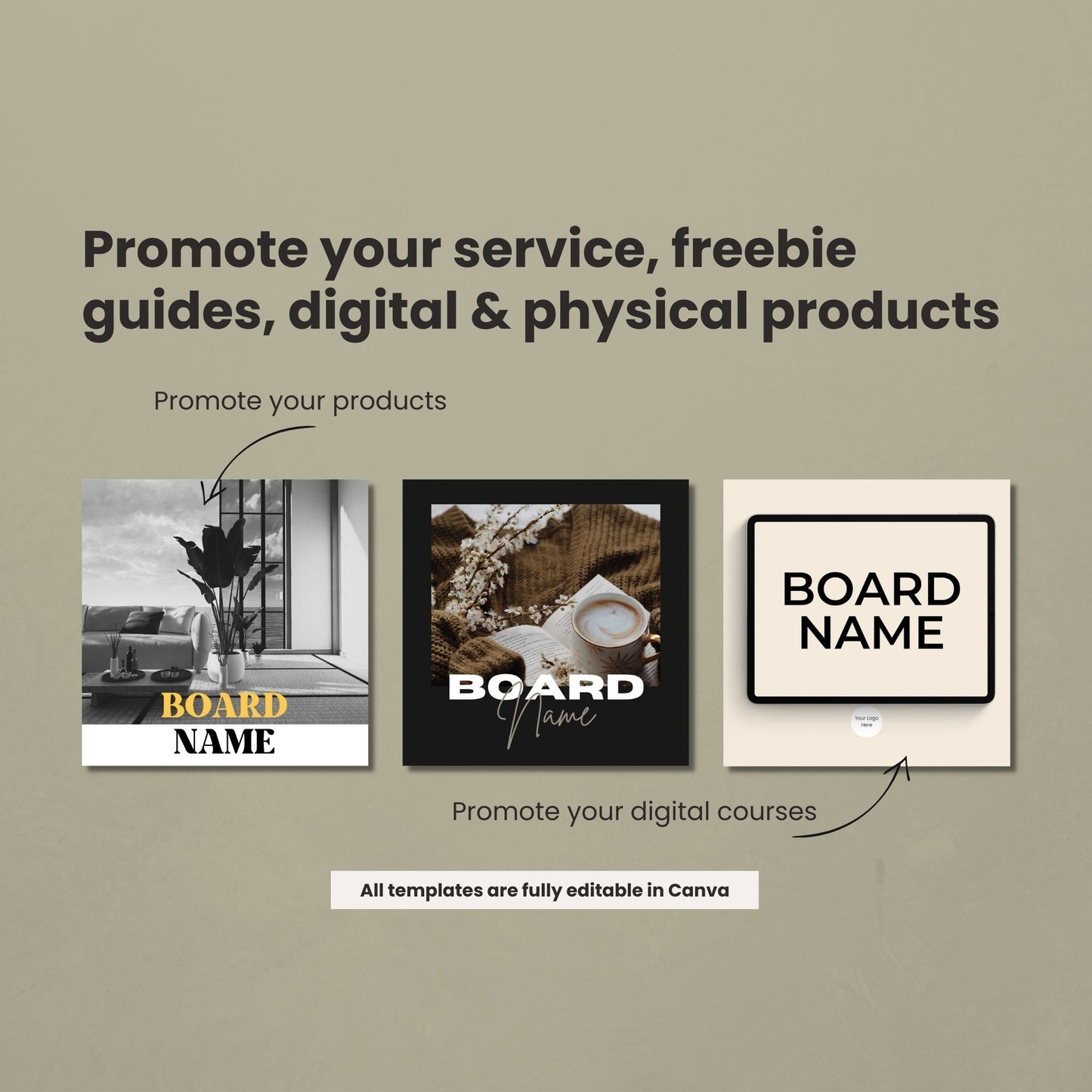 This isn’t about pretty graphics for the sake of it—your Pinterest boards are like aisles in a store. These templates help you label them clearly and make them click-worthy.